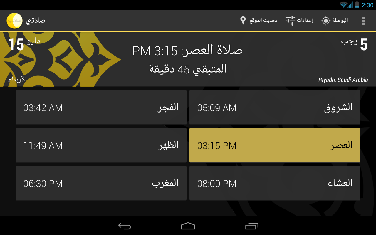 يعتبر برنامج صلاتي – My Prayer من اشهر برامج الأذان وافضلها، حيث بإمكانه تحديد موقعك وموعد الأذان المحدد لمنطقتك بطريقة ذكية. مميزات التطبيق