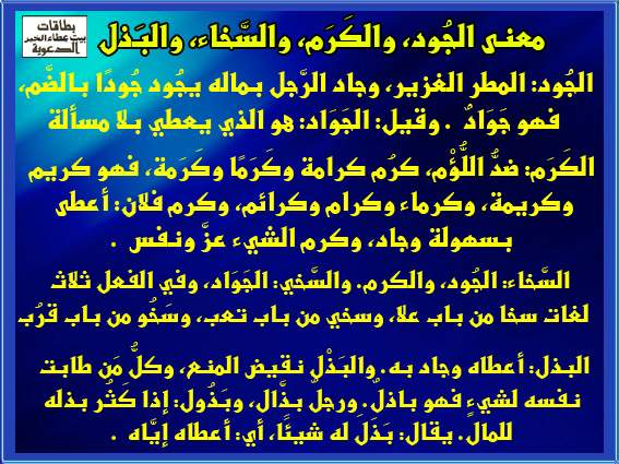 بطاقات الجُود، والكَرَم، والسَّخاء، والبَذل