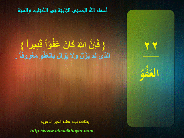 بطاقات أسماء الله الحسنى الثابتة فى الكتاب والسنة الحلقة الحادية عشرة من الأخت الزميلة / راجية الجنة |