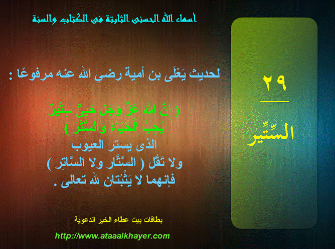بطاقات أسماء الله الحسنى الثابتة فى الكتاب والسنة الحلقة الخامسة عشرة من الأخت الزميلة / راجية الجنة |