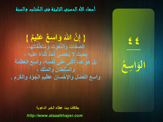 بطاقات أسماء الله الحسنى الثابتة فى الكتاب والسنة الحلقة الثانية و العشرون من الأخت الزميلة / راجية الجنة |