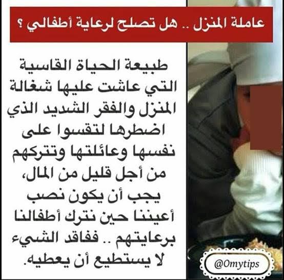 عاملة المنزل هل تصلح لرعاية الأطفال؟ من : إدارة بيت عطاء الخير |