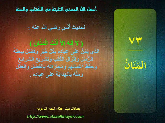 بطاقات أسماء الله الحسنى الثابتة فى الكتاب والسنة الحلقة السابعة و الثلاثون من الأخت الزميلة / راجية الجنة |