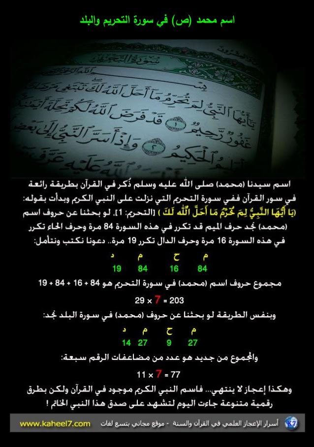 اسم محمد في سورة التحريم والبلد من : الأخ المهندس / عبدالدائم الكحيل |