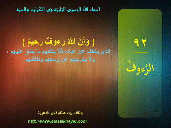 بطاقات أسماء الله الحسنى الثابتة فى الكتاب والسنة الحلقة السادسة والأربعون من الأخت الزميلة / راجية الجنة |