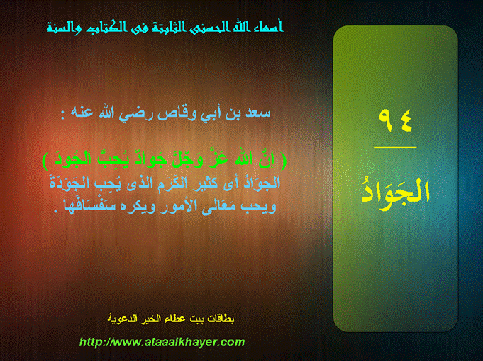 بطاقات أسماء الله الحسنى الثابتة فى الكتاب والسنة الحلقة السابعة والأربعون من الأخت الزميلة / راجية الجنة |