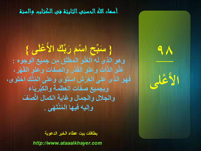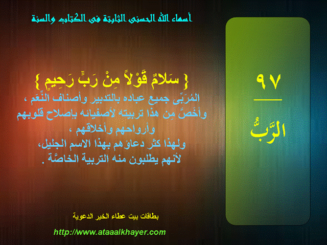 بطاقات أسماء الله الحسنى الثابتة فى الكتاب والسنة الحلقة التاسعة والأربعون من الأخت الزميلة / راجية الجنة |