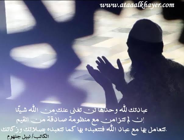 عبادتك لله الأخ الأستاذ / نبيل جلهوم عضو جمعية الكُتَّاب ببيت عطاء الخير عضو إتحاد الكتّاب و المثقفين العرب - مصر عضو رابطة أدباء الشام – لندن عضو الإتحاد العالمى للشعراء والمبدعين العرب http://www.ataaalkhayer.com/up/download.php?img=5245 |