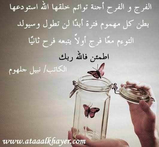 هل صار من قوانين الزمان؟ الأخ الأستاذ / نبيل جلهوم عضو جمعية الكُتَّاب ببيت عطاء الخير عضو إتحاد الكتّاب و المثقفين العرب - مصر عضو رابطة أدباء الشام – لندن عضو الإتحاد العالمى للشعراء والمبدعين العرب http://www.ataaalkhayer.com/up/download.php?img=5331 وهل صار من قوانين الزمان أن الجرح العميق ماعاد يأتى إلا ممن أحببناهم بعمق ؟ أسلوبك لهجة كلامك يكشفان كيف تربيت يكشفان عمق أخلاقك أو سطحيتها بإيجاز أسلوبك ولهجتك وكيفية تناولك للأمور كل ذلك يكشف من تكون |