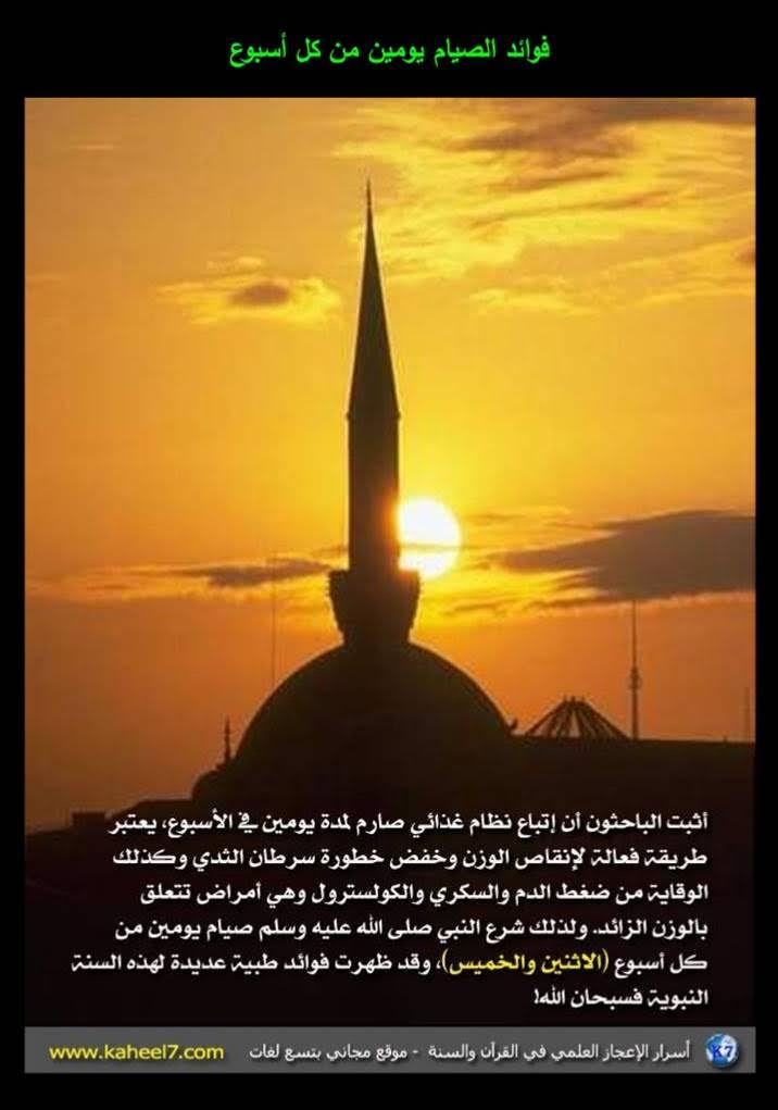 فوائد صيام يومين من كل أسبوع من : الأخ المهندس / عبدالدائم الكحيل |