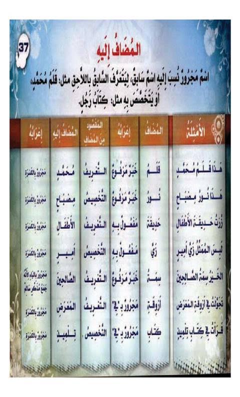 تيسير قواعد اللغة العربية للمبتدئين ( 35 – 37 ) من الأخت الزميلة / منة الرحمن المضاف إليه |