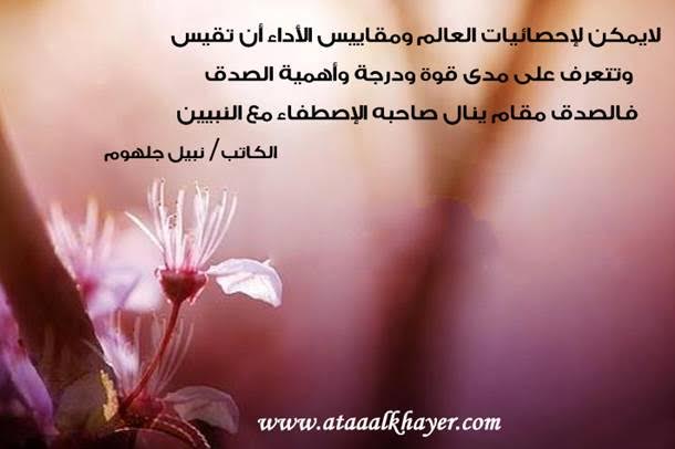 أهمية الصدق الأخ الأستاذ / نبيل جلهوم عضو جمعية الكُتَّاب ببيت عطاء الخير عضو إتحاد الكتّاب و المثقفين العرب - مصر عضو رابطة أدباء الشام – لندن عضو الإتحاد العالمى للشعراء والمبدعين العرب http://www.ataaalkhayer.com/up/download.php?img=5431 |