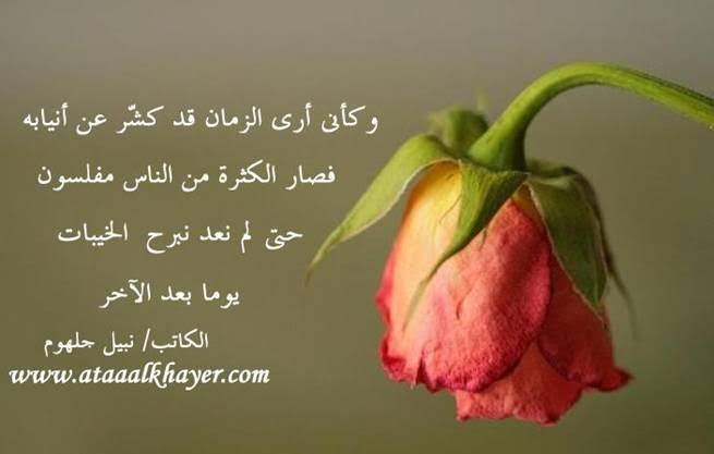وكأن الزمان الأخ الأستاذ / نبيل جلهوم عضو جمعية الكُتَّاب ببيت عطاء الخير عضو إتحاد الكتّاب و المثقفين العرب - مصر عضو رابطة أدباء الشام – لندن عضو الإتحاد العالمى للشعراء والمبدعين العرب http://www.ataaalkhayer.com/up/download.php?img=5457 |