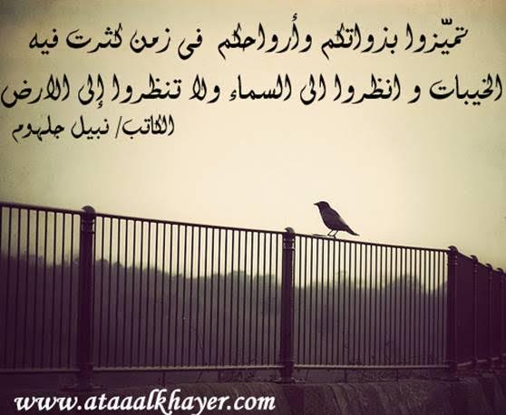 زمن الخيبات الأخ الأستاذ / نبيل جلهوم عضو جمعية الكُتَّاب ببيت عطاء الخير عضو إتحاد الكتّاب و المثقفين العرب - مصر عضو رابطة أدباء الشام – لندن عضو الإتحاد العالمى للشعراء والمبدعين العرب http://www.ataaalkhayer.com/up/download.php?img=5518 |