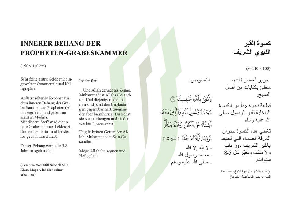 البروفيسور / نديم محمد عطا الله الياس المستشار الديني لبيت عطاء الخير رئيس أمناء المجلس الأعلى للمسلمين بألمانيا رئيس المجمع العالمي للأوقاف الإسلامية للتعليم والثقافة تابع إفتتاح معرض كسوة الكعبة المشرفة السادة / مبرة الأعمال الخيرية للشيخ محمد عطا الله إلياس يرحمه الله أخي الحبيب عدنان يحفظه الله السلام عليكم ورحمة الله وبركاته إضافة للتقرير الذي وصلكم بالأمس حول افتتاح معرض الكسوة المشرفة أود بإسم المجمع العالمي للأوقاف الإسلامية وبأسمي الدعاء والشكر لكم على دعمكم هذا الحدث الحضاري النادر في الغرب. وقد أكملت القطع التي أهديتمونا إياها من الكسوة الداخلية للكعبة المشرفة والحجرة النبوية والقنديلين من زينة الكسوة المجموعة الموجودة لدينا، فأصبحت المجموعة الكاملة الأولى التي تعرض في الغرب، متوّجة بستار باب الكعبة المشرفة ونقول بحق أن هذا العرض بتكامله حدث علمي وفني وحضاري غير مسبوق. وما ذلك إلا بفضل الله وتوفيقه، ثم بتضافر الجهود منكم ومن أمثالكم. فجعل الله ذلك في موازين حسناتكم وحسنات والدنا و زوجاته وذريته وأنار به مثواههما ووسع به مُدخلهما ورفع به مستقرهما في جنات الفردوس وجمعنا بهما في صحبة صفيه وحبيبه صلى الله عليه وسلم وأرفق لكم بعض الصور والبطاقات التوصيفية للقطع المهداة، والسلام عليكم ورحمة الله وبركاته د. نديم محمد عطا الله إلياس رئيس المجمع العالمي للأوقاف الإسلامية والآن نستعرض الصور http://www.ataaalkhayer.com/up/download.php?img=6105 http://www.ataaalkhayer.com/up/download.php?img=6106 http://www.ataaalkhayer.com/up/download.php?img=6109 http://www.ataaalkhayer.com/up/download.php?img=6110 http://www.ataaalkhayer.com/up/download.php?img=6111 http://www.ataaalkhayer.com/up/download.php?img=6112 http://www.ataaalkhayer.com/up/download.php?img=6113 http://www.ataaalkhayer.com/up/download.php?img=6114 http://www.ataaalkhayer.com/up/download.php?img=6115 http://www.ataaalkhayer.com/up/download.php?img=6116 ونيابة عنكم وأصالة عن أنفسنا نتقدم بجزيل الشكر والتقدير وبخالص الدعاء بالتوفيق والنجاح لسيدي الأخ البروفيسور / نديم محمد عطاالله الياس والسيدة الفاضلة / حرمه المصون جزاه الله عنا وعن الإسلام والمسلمين خير الجزاء مجموعات ومواقع بيت عطاء الخير الإسلامية عنهم / عدنان محمد عطاالله الياس |