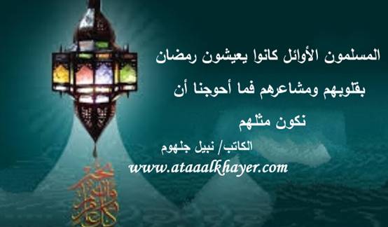 معايشة رمضان الأخ الأستاذ / نبيل جلهوم عضو جمعية الكُتَّاب ببيت عطاء الخير عضو إتحاد الكتّاب و المثقفين العرب - مصر عضو رابطة أدباء الشام – لندن عضو الإتحاد العالمى للشعراء والمبدعين العرب عضو إتحاد المدربين العرب عضو رابطة الأدب الإسلامى العالمية http://www.ataaalkhayer.com/up/download.php?img=6625 |