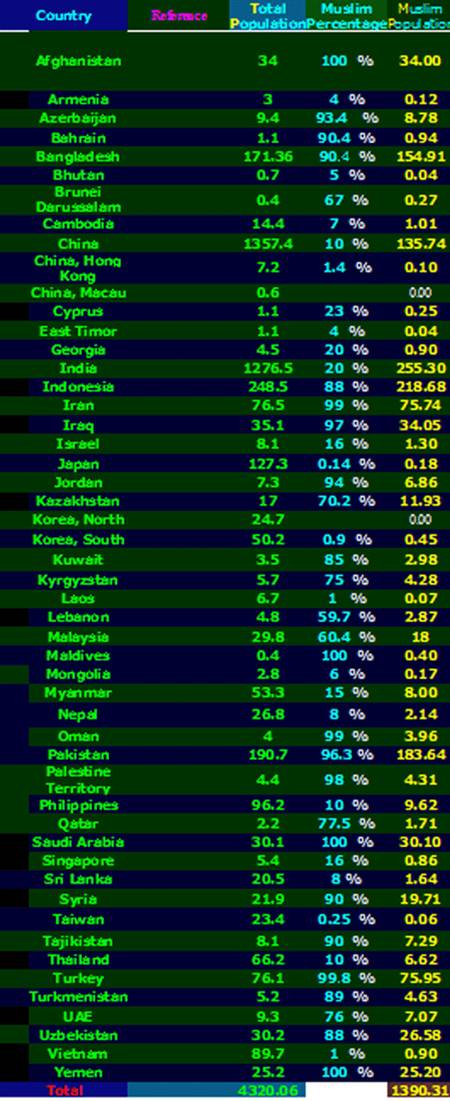 من:الأخ المهندس / عبدالدائم الكحيل الإسلام هو الأول عالمياً الإسلام هو الأول عالمياً ويتجاوز 2 مليار مسلم لقد أصبح الإسلام هو الدين الأول عالمياً حسب آخر الإحصائيات والتي تؤكد أن هذا الانتشار المذهل سيزداد بشكل متسارع في السنوات القادمة.... الإسلام ينتشر بسرعة هائلة ولكن بهدوء وصمت! هذه الحقيقة هي أكثر ما يلاحظه أي مهتم بشئون الإسلام على مستوى العالم. والأرقام التي سنقرأها ربما تشكل مفاجأة لكثير منا. تبين الدراسات الإحصائية أن عدد المسلمين في العالم هو 2.038 مليار مسلم والنسبة الأكبر في آسيا بحدود 1389.5 ميلون مسلم تليها أفريقيا بعدد 581.58 مليون مسلم. في إحصاء منشور على موقع بي بي سي تبين أن ثلثي البريطانيين لا يعتبرون أنفسهم كمتدينين أو غير مكترثين بديانتهم الأصلية وهي المسيحية (2). بينما نجد أن معظم المسلمين في العالم الإسلامي يفتخرون بانتمائهم للإسلام، ولا نجد إلا نادراً من يجاهر بإلحاده أو عدم رضاه عن دينه، وهذا دليل على قوة تعاليم الإسلام. وتقول دراسة أخرى أجريت في بريطانيا إن عدد الناس الذين وصفوا أنفسهم بأنهم مسيحيون انخفض 10 % خلال خمس سنوات (2005- 2010)، مع العلم أن كثيراً من الناس في الغرب يجيب على سؤال: هل تعتبر نفسك متديناً فيجيب نعم لاعتبارات اجتماعية والحقيقة عكس ما يقول. وتؤكد دراسة جديدة أن أعداد المسيحيين في أمريكا في تناقص مستمر، طبعاً ينقلبون غالباً إلى الإلحاد. وفي إحصائية منشورة على موقع سي إن إن الأمريكي يقولون إنه واحد من كل خمسة أمريكيين ليس له دين! وهكذا العديد من الدراسات التي أجريت في بلاد أوربية تؤكد انخفاض أعداد المسيحيين المتدينين.. ونسبة الإلحاد في تزايد بسبب التناقض الذي يعيشه الإنسان الغربي بين العلم والدين. إن أكبر دولة إسلامية حالياً هي إندونيسيا التي يتجاوز عدد المسلمين فيها 218 مليون مسلم . وتليها باكستان 183 مليون مسلم، ثم بنغلادش التي يعيش فيها 154 مليون مسلم، ولكن الدولة التي تحوي أكبر عدد من المسلمين هي الهند التي يقطنها أكثر من 255 مليون مسلم. وهناك دولة مثل الصين فيها 135 مليون مسلم.. دعونا الآن نتأمل أحدث إحصائية لأعداد المسلمين حول العالم موزعين حسب القارات الخمس: يمثل هذا الجدول توزع المسلمين في دول آسيا ويبلغ عدد سكان هذه القارة من المسلمين 1389.5 مليون مسلم. المرجع (www.muslimpopulation.com) يمثل هذا الجدول توزع المسلمين في دول أفريقيا ويبلغ عدد سكان هذه القارة من المسلمين 581.58 مليون مسلم. المرجع (www.muslimpopulation.com) يمثل هذا الجدول توزع المسلمين في دول أوربا ويبلغ عدد سكان هذه القارة من المسلمين 56.19 مليون مسلم. المرجع (www.muslimpopulation.com) يمثل هذا الجدول توزع المسلمين في دول أمريكا ويبلغ عدد سكان هذه القارة من المسلمين 10.11 مليون مسلم. المرجع (www.muslimpopulation.com) يمثل هذا الجدول توزع المسلمين في أستراليا ويبلغ عدد سكان هذه القارة من المسلمين 0.67مليون مسلم، مع العلم أن هناك إحصائيات تؤكد أن الأرقام أكبر بكثير. المرجع (www.muslimpopulation.com) وبعد هذه الأرقام التي تدل على مدى انتشار الإسلام يخطر ببالنا سؤال: هل يمكن للنبي الكريم أن يتنبأ بهذا التوزع المذهل للمسلمين بعد موته بألف وأربع مائة سنة؟ لقد قال النبي الكريم صلى الله عليه وسلم: (ليبلغن هذا الأمر ما بلغ الليل والنهار، ولا يترك الله بيت مدر ولا وبر إلا أدخله الله هذا الدين بعز عزيز أو بذل ذليل، عزاً يعز الله به الإسلام، وذلاً يذل به الكفر) [رواه ابن حبان]. انظروا إلى قوة هذا الحديث الذي قاله النبي في مرحلة لم يكن الإسلام قد خرج خارج الجزيرة العربية! وتأملوا الثقة الكبيرة في هذه الكلمات (بعز عزيز أو بذل ذليل)، فمهما حاول الملحدون محاربة هذا الدين لابد في النهاية أن يدخل بيوتهم.. وكذلك نجد قوله تعالى: { هُوَ الَّذِي أَرْسَلَ رَسُولَهُ بِالْهُدَى وَدِينِ الْحَقِّ لِيُظْهِرَهُ عَلَى الدِّينِ كُلِّهِ وَكَفَى بِاللَّهِ شَهِيدًا } [الفتح: 28]. وتأملوا كلمة (لِيُظْهِرَهُ) أي ليجعل هذا الدين هو الأكثر ظهوراً وانتشاراً.. ونقول لكل ملحد يد