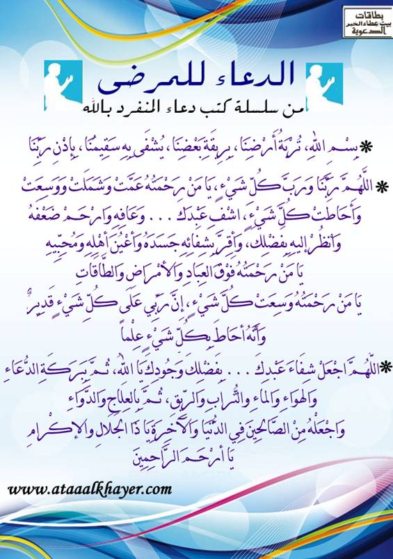 الدعاء للمرضى (04) من:الأخ الدكتور / عبدالله بن مراد العطرجي عضو جمعية الكُتَّاب ببيت عطاء الخير |