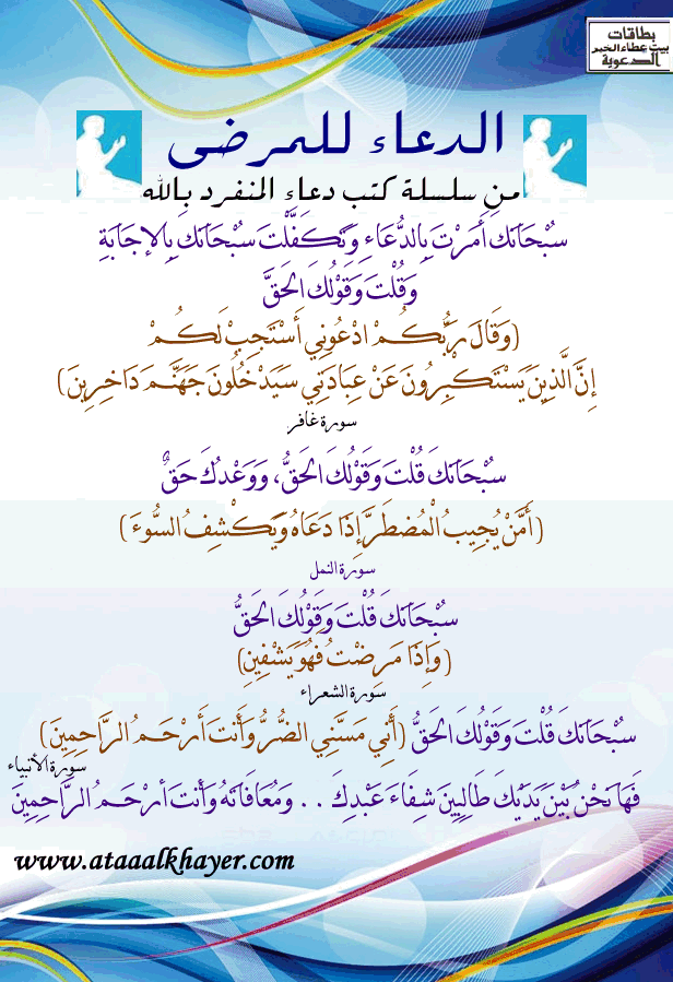 الدعاء للمرضى (09) من:الأخ الدكتور / عبدالله بن مراد العطرجي عضو جمعية الكُتَّاب ببيت عطاء الخير |