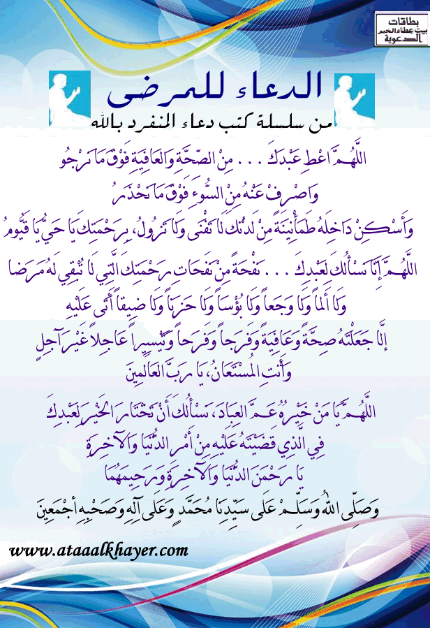الدعاء للمرضى (21) من:الأخ الدكتور / عبدالله بن مراد العطرجي عضو جمعية الكُتَّاب ببيت عطاء الخير |