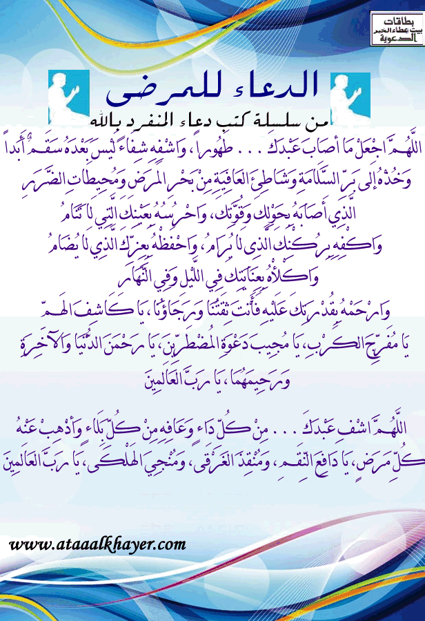 الدعاء للمرضى (24) من:الأخ الدكتور / عبدالله بن مراد العطرجي عضو جمعية الكُتَّاب ببيت عطاء الخير |