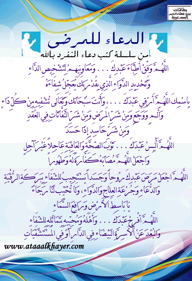 الدعاء للمرضى (25) من:الأخ الدكتور / عبدالله بن مراد العطرجي عضو جمعية الكُتَّاب ببيت عطاء الخير |