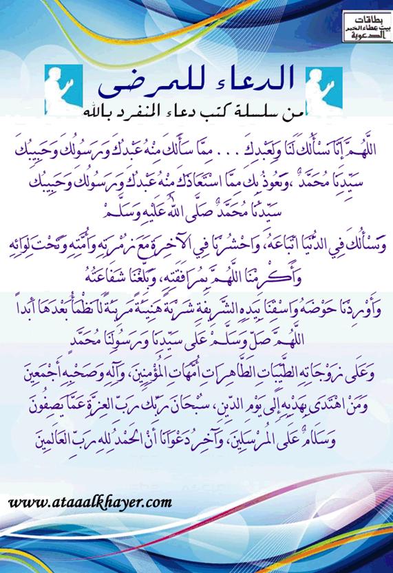الدعاء للمرضى (41) من:الأخ الدكتور / عبدالله بن مراد العطرجي عضو جمعية الكُتَّاب ببيت عطاء الخير |