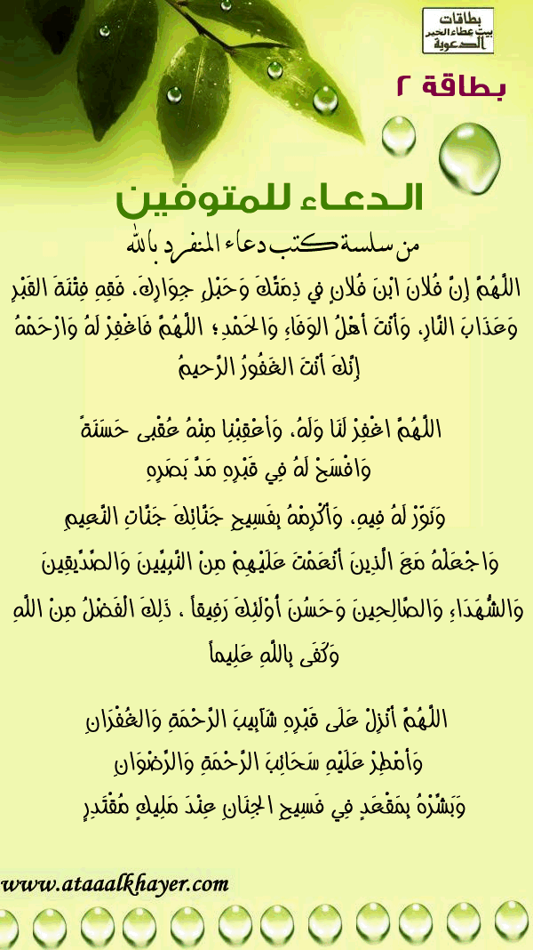 الدعاء للمتوفين (02) من:الأخ الدكتور / عبدالله بن مراد العطرجي عضو جمعية الكُتَّاب ببيت عطاء الخير |