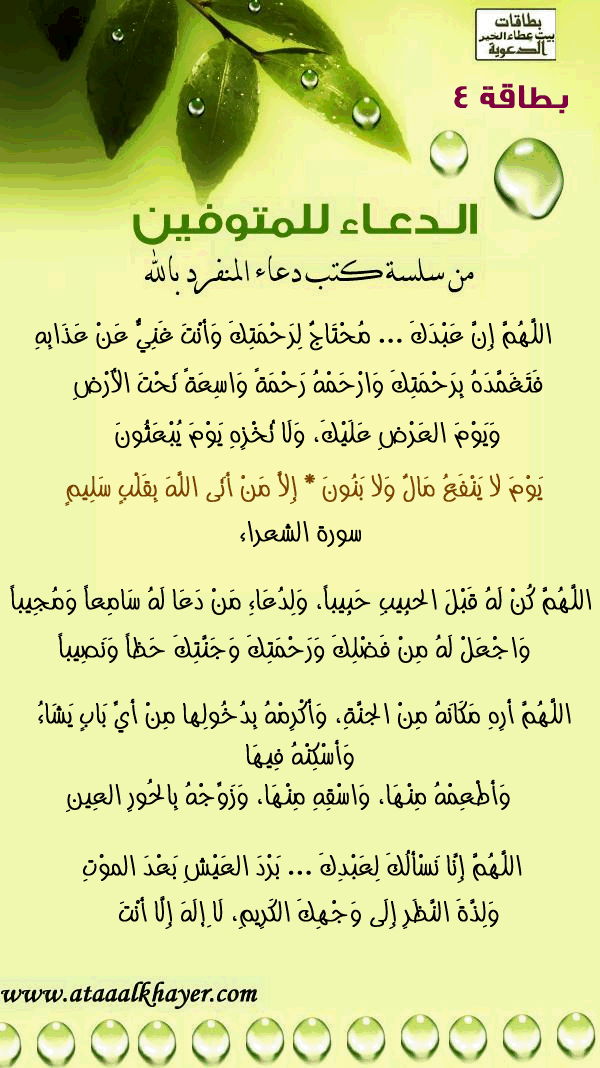 الدعاء للمتوفين (04) من:الأخ الدكتور / عبدالله بن مراد العطرجي عضو جمعية الكُتَّاب ببيت عطاء الخير |