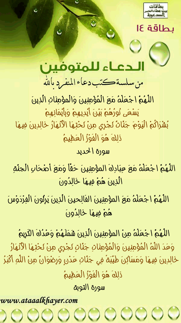 الدعاء للمتوفين (14) من:الأخ الدكتور / عبدالله بن مراد العطرجي عضو جمعية الكُتَّاب ببيت عطاء الخير |