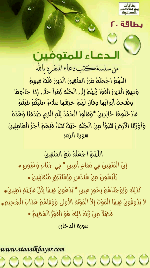 الدعاء للمتوفين (20) من:الأخ الدكتور / عبدالله بن مراد العطرجي عضو جمعية الكُتَّاب ببيت عطاء الخير |