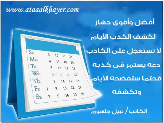 دعه يستمر ويكذب من:الأخ الأستاذ / نبيل جلهوم عضو جمعية الكُتَّاب ببيت عطاء الخير عضو إتحاد الكتّاب و المثقفين العرب - مصر عضو رابطة أدباء الشام – لندن عضو الإتحاد العالمى للشعراء والمبدعين العرب عضو إتحاد المدربين العرب عضو رابطة الأدب الإسلامى العالمية http://www.ataaalkhayer.com/up/download.php?img=7929 |