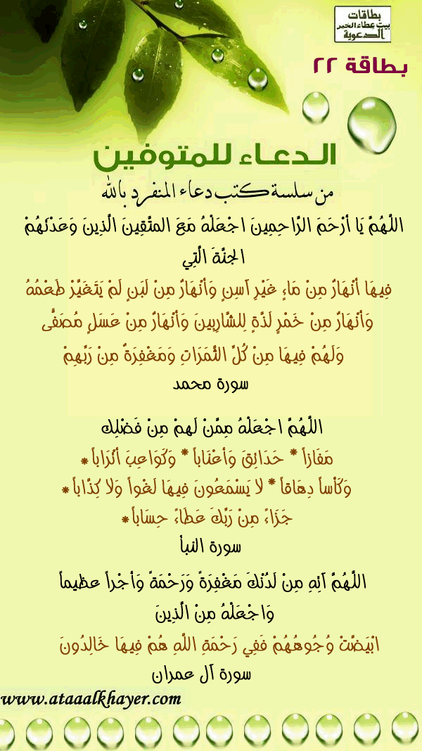 الدعاء للمتوفين (22) من:الأخ الدكتور / عبدالله بن مراد العطرجي عضو جمعية الكُتَّاب ببيت عطاء الخير |