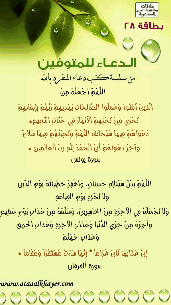 الدعاء للمتوفين (28) من:الأخ الدكتور / عبدالله بن مراد العطرجي عضو جمعية الكُتَّاب ببيت عطاء الخير |