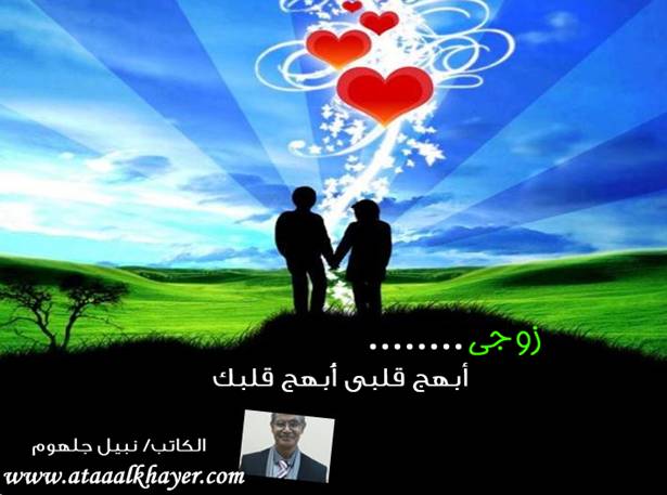 زوجي (13) من:الأخ الأستاذ / نبيل جلهوم عضو جمعية الكُتَّاب ببيت عطاء الخير عضو إتحاد الكتّاب و المثقفين العرب - مصر عضو رابطة أدباء الشام – لندن عضو الإتحاد العالمى للشعراء والمبدعين العرب عضو إتحاد المدربين العرب عضو رابطة الأدب الإسلامى العالمية http://www.ataaalkhayer.com/up/download.php?img=8310 |