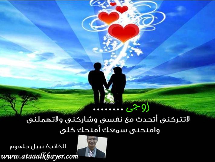 زوجي (30) من:الأخ الأستاذ / نبيل جلهوم عضو جمعية الكُتَّاب ببيت عطاء الخير عضو إتحاد الكتّاب و المثقفين العرب - مصر عضو رابطة أدباء الشام – لندن عضو الإتحاد العالمى للشعراء والمبدعين العرب عضو إتحاد المدربين العرب عضو رابطة الأدب الإسلامى العالمية http://www.ataaalkhayer.com/up/download.php?img=8459 |