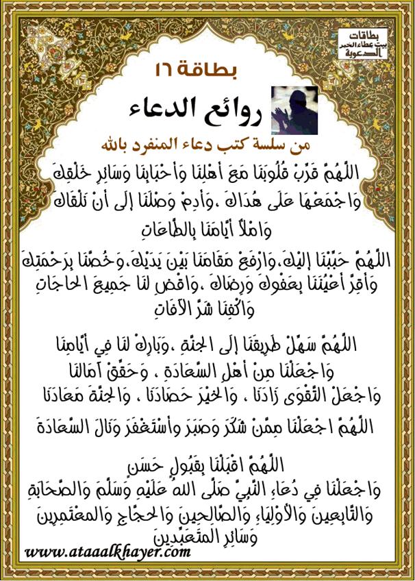 روائع الدعاء (16) من:الأخ الدكتور / عبدالله بن مراد العطرجي عضو جمعية الكُتَّاب ببيت عطاء الخير |