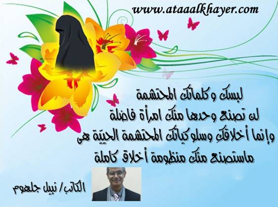 منظومة أخلاق كاملة من:الأخ الأستاذ / نبيل جلهوم عضو جمعية الكُتَّاب ببيت عطاء الخير عضو إتحاد الكتّاب و المثقفين العرب - مصر عضو رابطة أدباء الشام – لندن عضو الإتحاد العالمى للشعراء والمبدعين العرب عضو إتحاد المدربين العرب عضو رابطة الأدب الإسلامى العالمية http://www.ataaalkhayer.com/up/download.php?img=8510 |