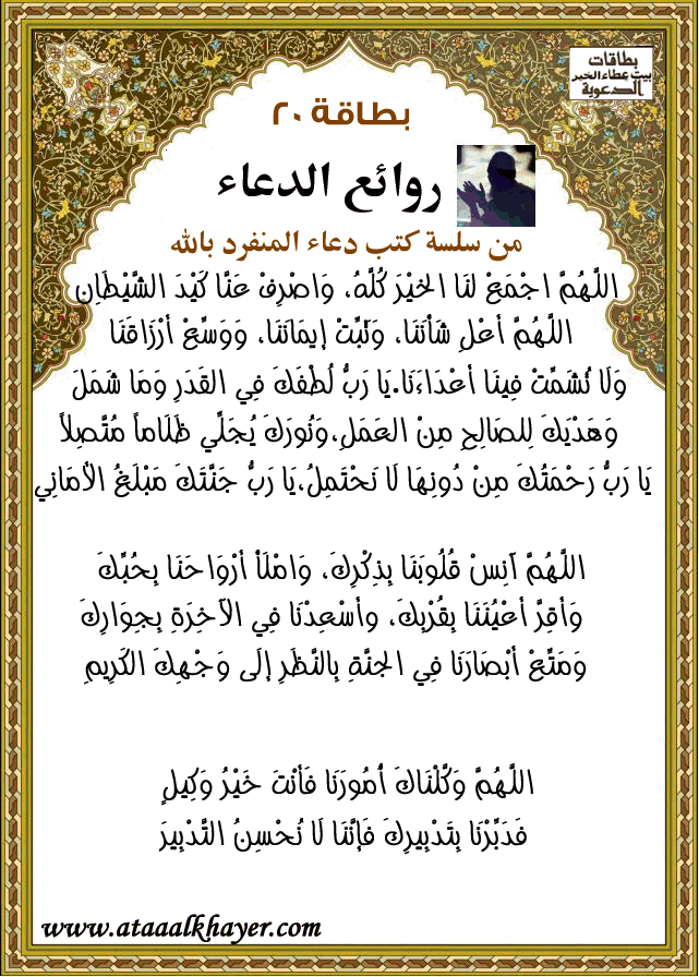 روائع الدعاء (20) من:الأخ الدكتور / عبدالله بن مراد العطرجي عضو جمعية الكُتَّاب ببيت عطاء الخير |