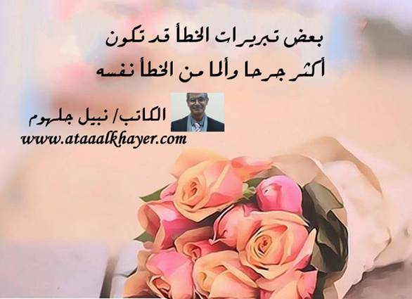 تبريرات الخطأ من:الأخ الأستاذ / نبيل جلهوم عضو جمعية الكُتَّاب ببيت عطاء الخير عضو إتحاد الكتّاب و المثقفين العرب - مصر عضو رابطة أدباء الشام – لندن عضو الإتحاد العالمى للشعراء والمبدعين العرب عضو إتحاد المدربين العرب عضو رابطة الأدب الإسلامى العالمية http://www.ataaalkhayer.com/up/download.php?img=8741 |