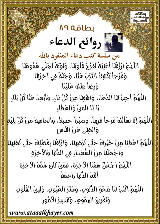 روائع الدعاء (89) من:الأخ الدكتور / عبدالله بن مراد العطرجي عضو جمعية الكُتَّاب ببيت عطاء الخير |