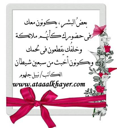 البعض... من:الأخ الأستاذ / نبيل جلهوم عضو جمعية الكُتَّاب ببيت عطاء الخير عضو إتحاد الكتّاب و المثقفين العرب - مصر عضو رابطة أدباء الشام – لندن عضو الإتحاد العالمى للشعراء والمبدعين العرب عضو إتحاد المدربين العرب عضو رابطة الأدب الإسلامى العالمية http://www.ataaalkhayer.com/up/download.php?img=9349 |