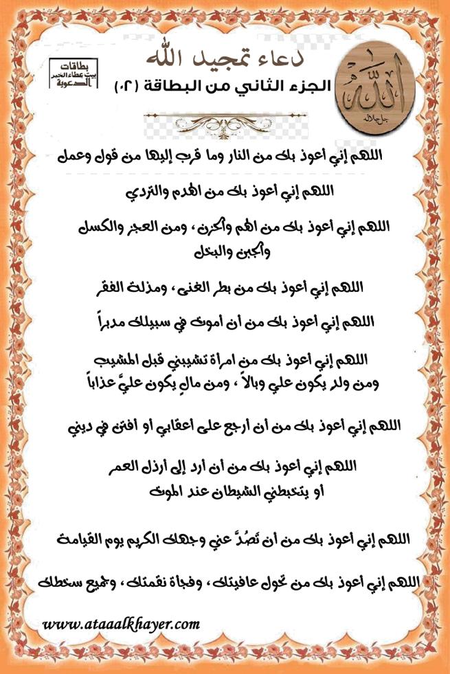 دعاء تمجيد الله بطاقة (02) الجزء الثاني من:الأخ الدكتور / عبدالله بن مراد العطرجي عضو جمعية الكُتَّاب ببيت عطاء الخير |