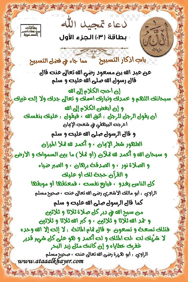 دعاء تمجيد الله بطاقة (03) الجزء الأول من:الأخ الدكتور / عبدالله بن مراد العطرجي عضو جمعية الكُتَّاب ببيت عطاء الخير |