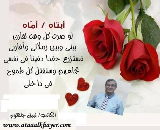 أبتاه/ أماه (23) من:الأخ الأستاذ / نبيل جلهوم عضو جمعية الكُتَّاب ببيت عطاء الخير عضو إتحاد الكتّاب و المثقفين العرب - مصر عضو رابطة أدباء الشام – لندن عضو الإتحاد العالمى للشعراء والمبدعين العرب عضو إتحاد المدربين العرب عضو رابطة الأدب الإسلامى العالمية http://www.ataaalkhayer.com/up/download.php?img=9591 |