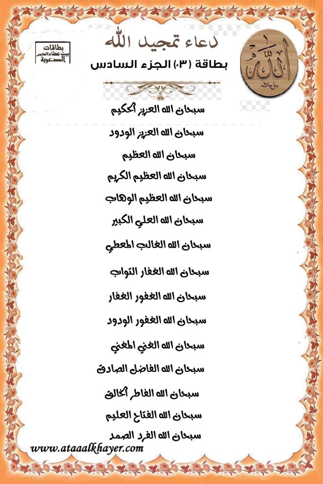 دعاء تمجيد الله بطاقة (03) الجزء السادس