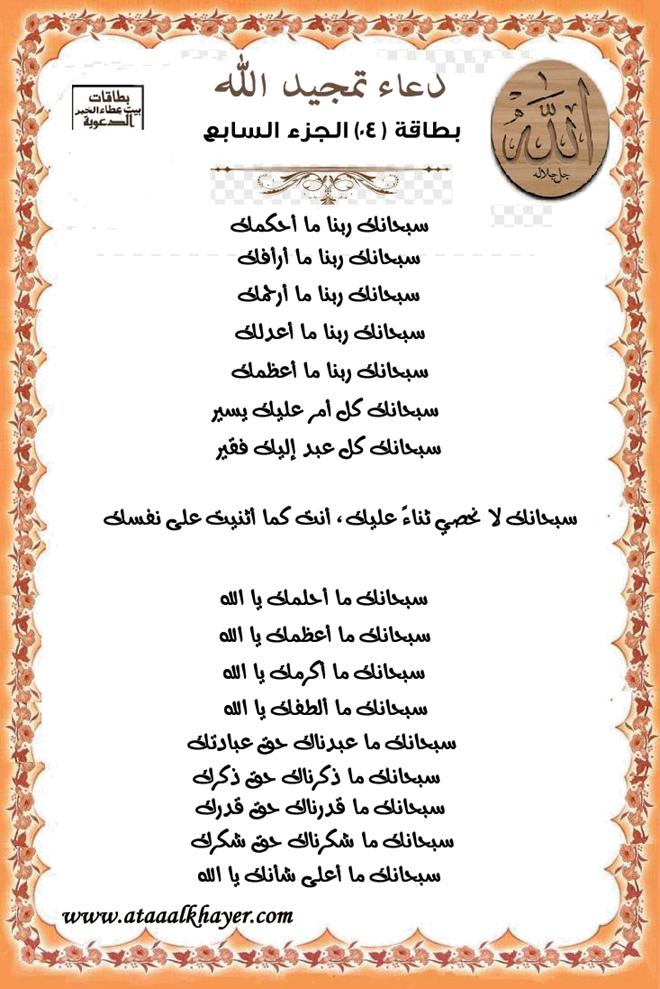 دعاء تمجيد الله بطاقة (04) الجزء السابع