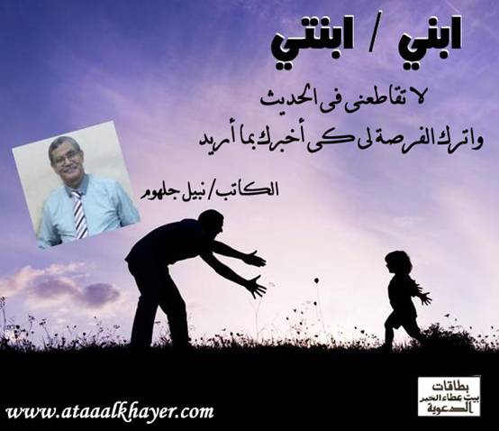 ابني / ابنتي (04) من:الأخ الأستاذ / نبيل جلهوم عضو جمعية الكُتَّاب ببيت عطاء الخير عضو إتحاد الكتّاب و المثقفين العرب - مصر عضو رابطة أدباء الشام – لندن عضو الإتحاد العالمى للشعراء والمبدعين العرب عضو إتحاد المدربين العرب عضو رابطة الأدب الإسلامى العالمية http://www.ataaalkhayer.com/up/download.php?img=9699 |