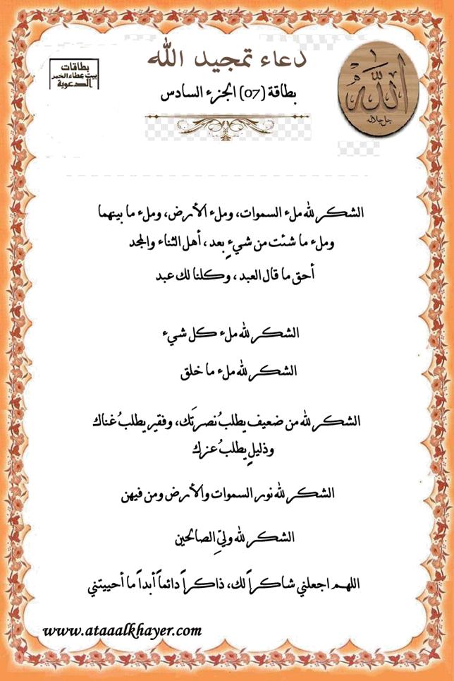 دعاء تمجيد الله بطاقة (07) الجزء السادس