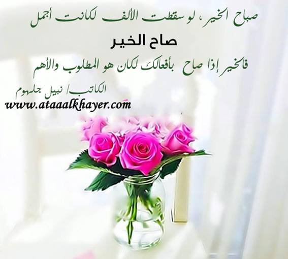 صاح الخير وصباح الخير من:الأخ الأستاذ / نبيل جلهوم عضو جمعية الكُتَّاب ببيت عطاء الخير عضو إتحاد الكتّاب و المثقفين العرب - مصر عضو رابطة أدباء الشام – لندن عضو الإتحاد العالمى للشعراء والمبدعين العرب عضو إتحاد المدربين العرب عضو رابطة الأدب الإسلامى العالمية http://www.ataaalkhayer.com/up/download.php?img=9913 |